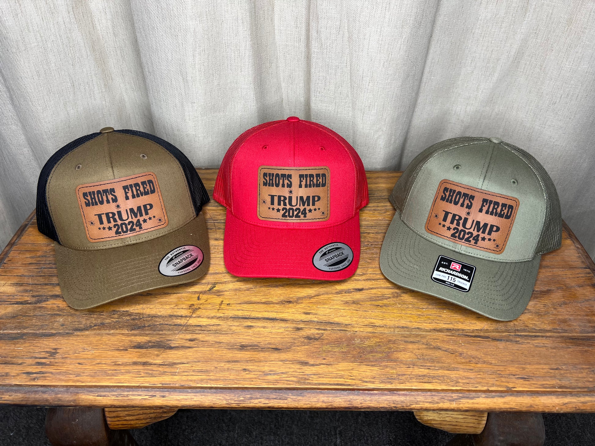 Stay stylish and show your support with the Shots Fired Trump 2024 Hat. Featuring a Richardson 112 design, adjustable fit, and comfortable mesh back, this hat is perfect for all-day wear. The leather patch adds a touch of sophistication to your look. Join the movement and stand strong with this must-have accessory.